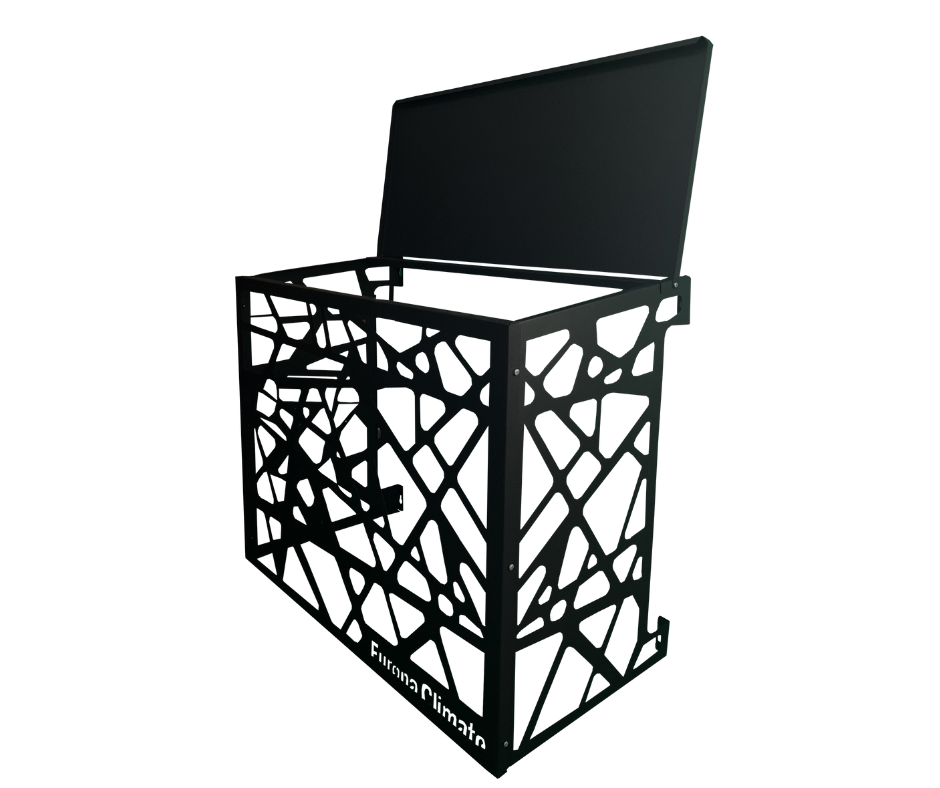 Ett robust skydd som skyddar luftkonditioneringen från löv, grenar, snö, hagel och andra element, vilket förlänger dess livslängd och prestanda.